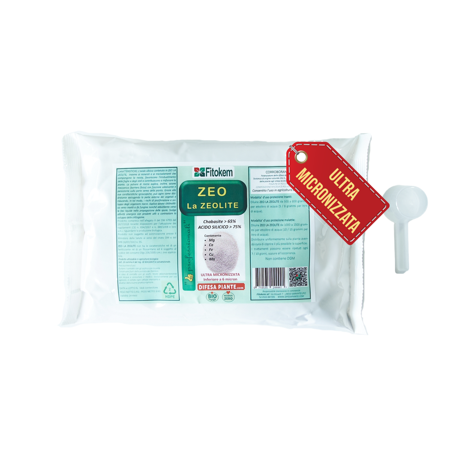 ZEO LA ZEOLITE non ha le caratteristiche né di un fertilizzante né di un fitosanitario ed è soggetto al codice del consumo Dlgs 206/2005 s.m.i. ove applicabile. Prodotto utilizzabile in agricoltura biologica. (art. 16 comma 4 del reg. CE 834/2007) e convenzionale. Precauzione d’uso: Evitare il contatto con gli occhi e con la pelle. Conservare fuori dalla portata dei bambini.